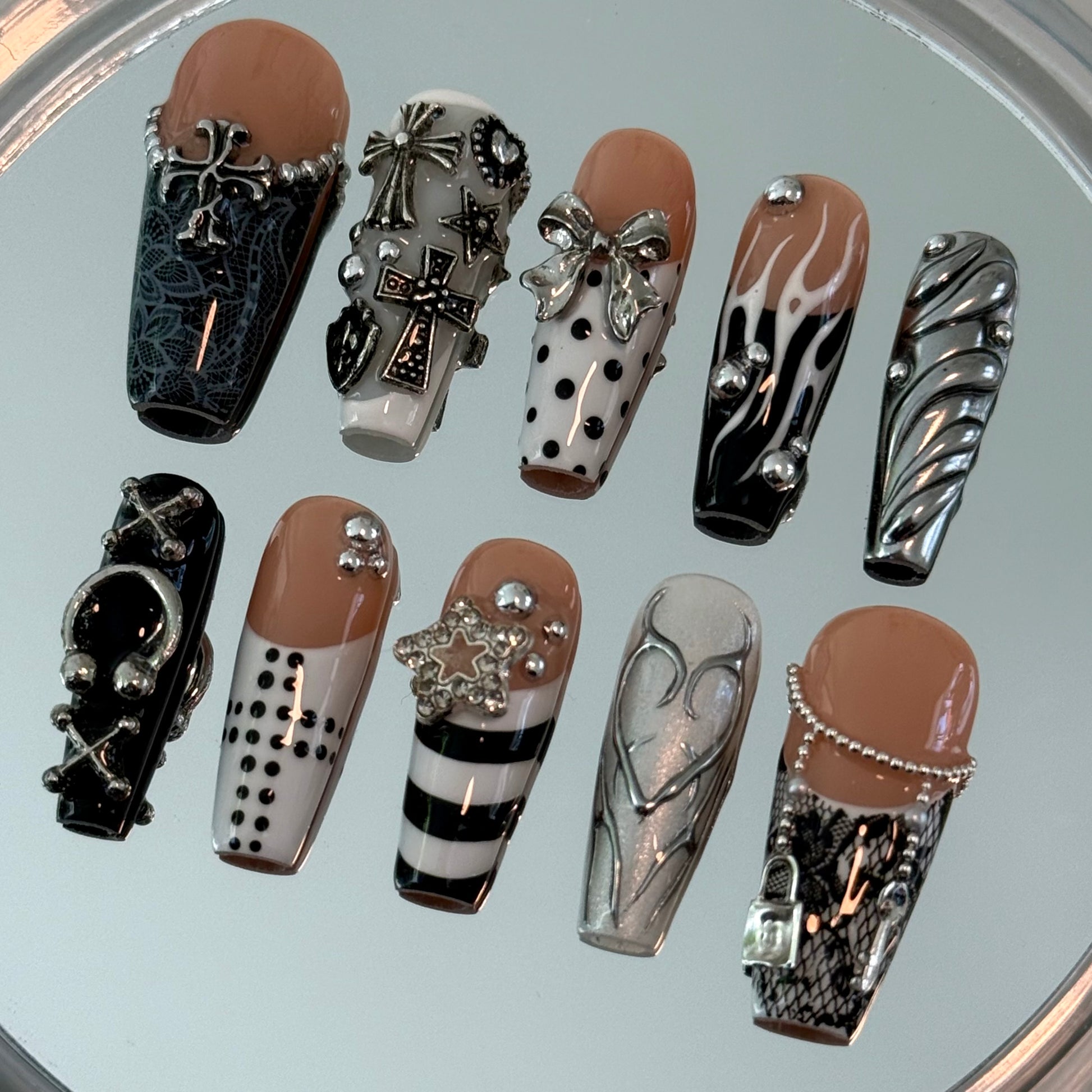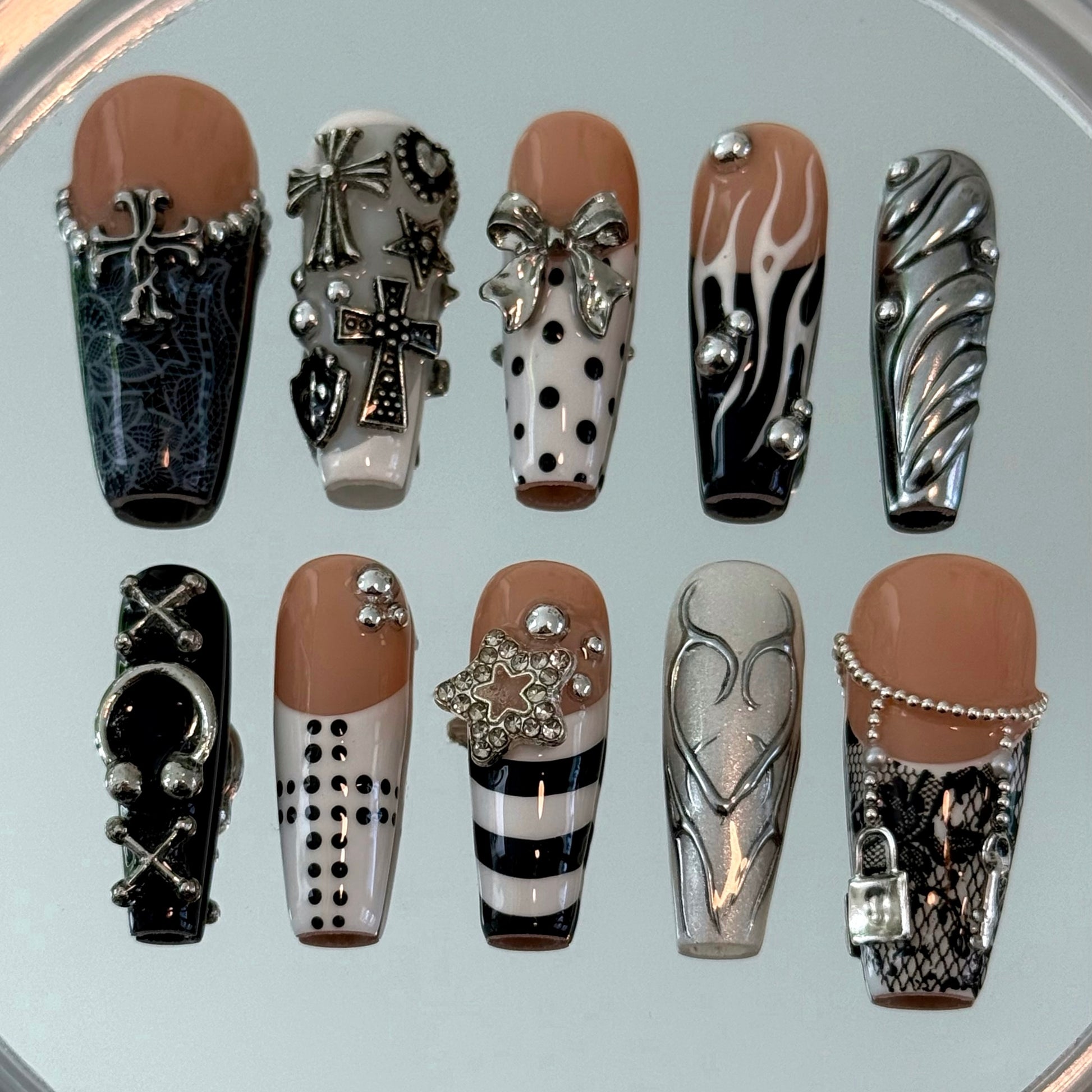 Image is in Nail Length "Long Coffin". Some charms may be slightly different but still keep the same overall aesthetic.