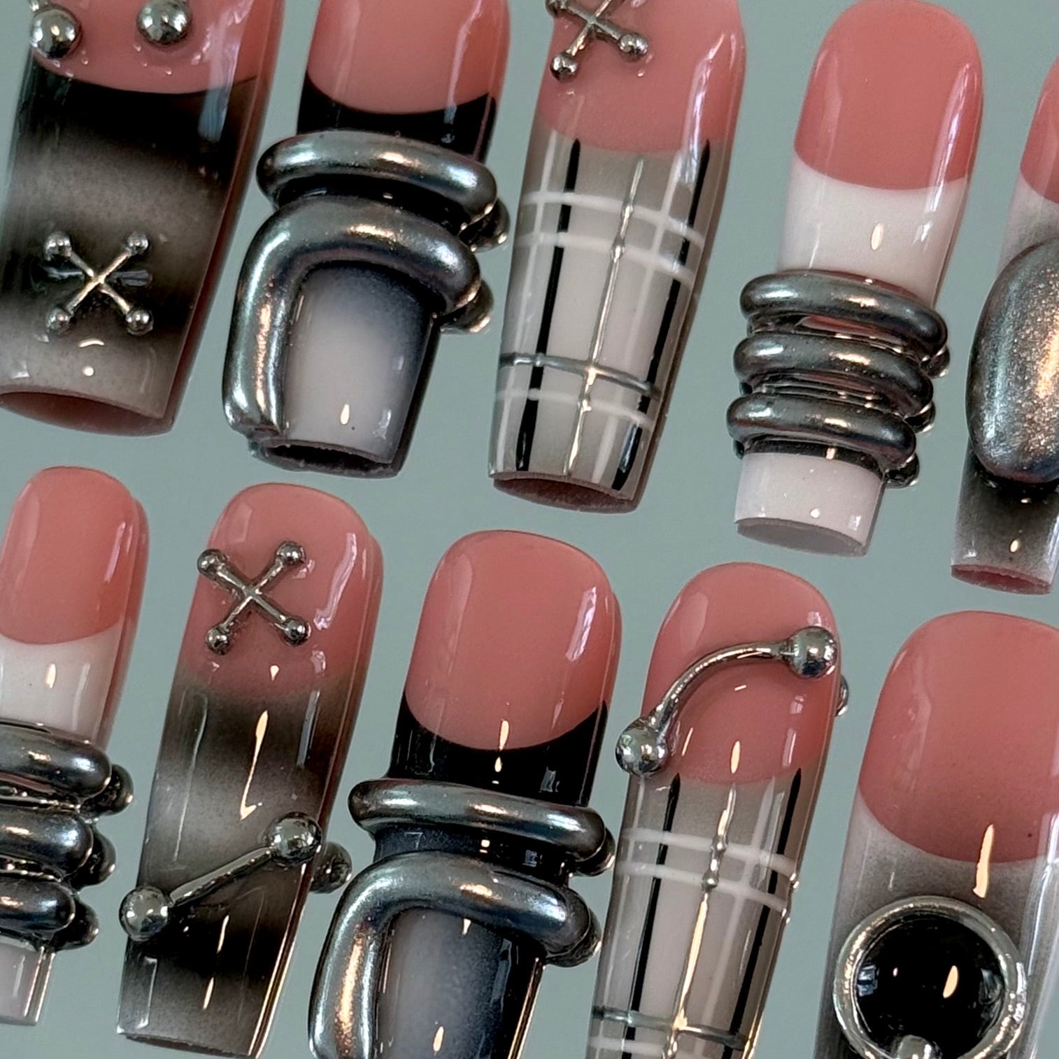 Image is in Nail Length "Long Square". Some charms may be slightly different but still keep the same overall kawaii aesthetic.