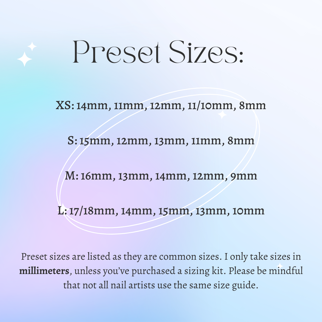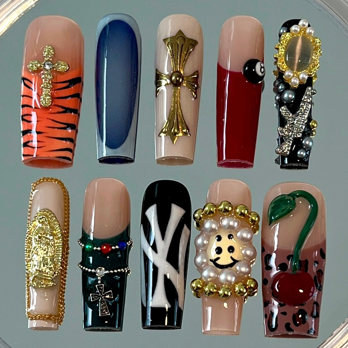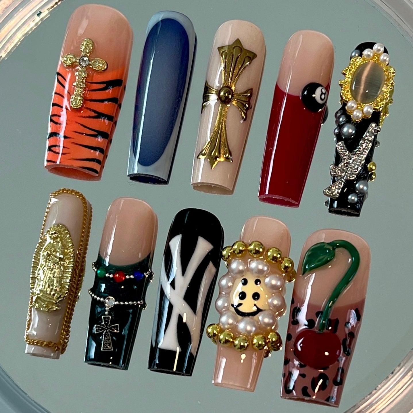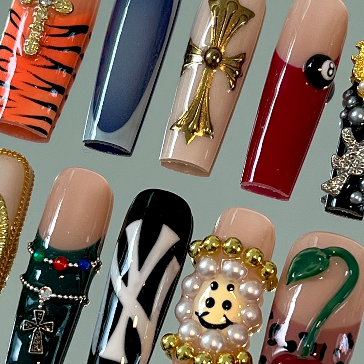 Image is in Nail Length "Long Square". Some charms may be slightly different but still keep the same overall aesthetic.